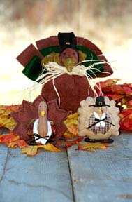 Turkey Trio. The pattern includes 3 different styles of turkeys. One is sure to catch your eye. Make one or make them all. Make several little ones, put names on their tails for each place setting at your dinner table.