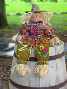 This 25" Scarecrow bench sitter is weighted with a box of salt. He will sit wherever you desire. Price $7.50