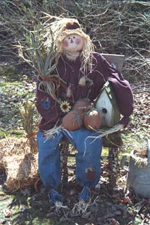 5' Scarecrow made with recycled clothes, will sit or hang. He's so big we call him Harley A Scarecrow. Price $7.50