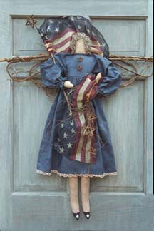 Gloria the Americana doll is 34" tall. She has a grapevine cloud spray on her back, and sheer
