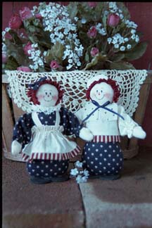 This 6" Ann + Andy have wooden hearts as a base to stand on. Price $7.50