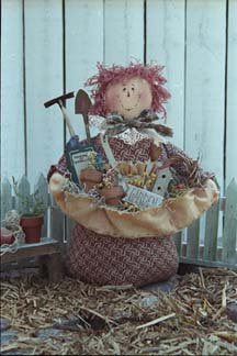 A 9" bean bag style Raggedy Ann doll with an apron full of garden delights. Price $7.50