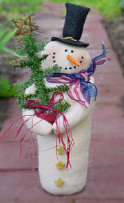 This 19" snowman is weighted to stand wherever you like him. He holds a tree to represent new life and wears a patriotic scarf to show his pride. Price$7.50