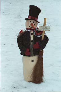 This 37" snowman is called Frosty's Wish. He is made from Warm and Natural and carries a sign